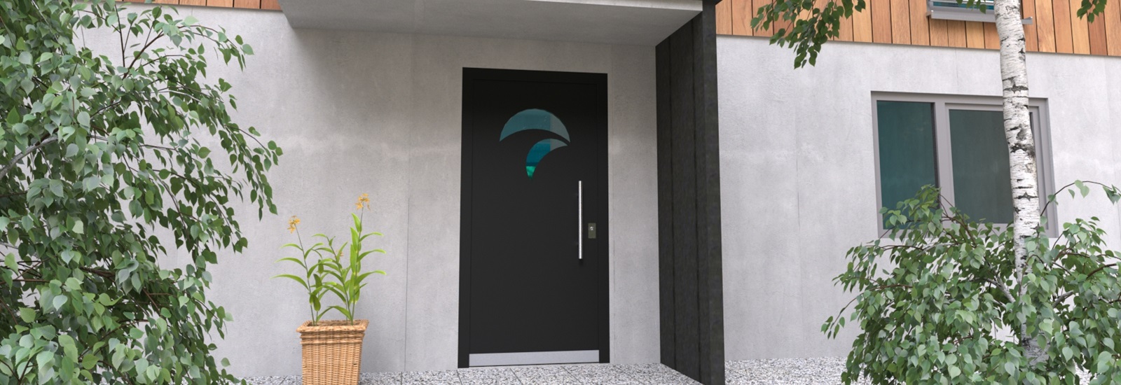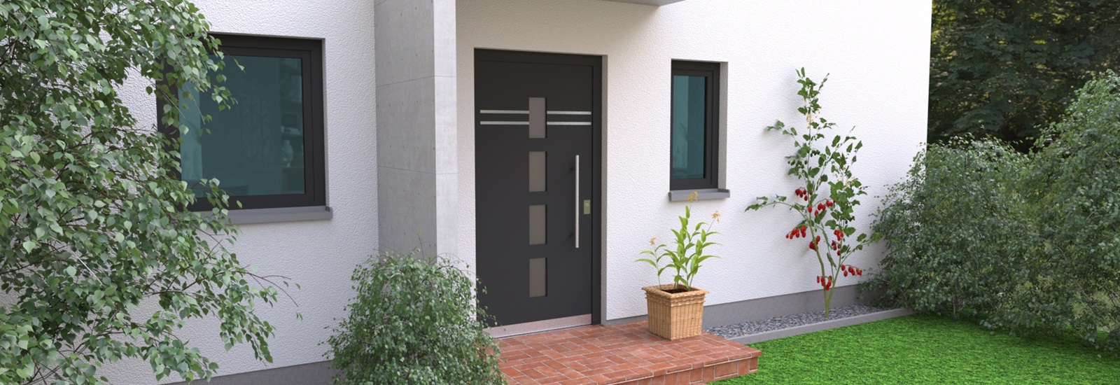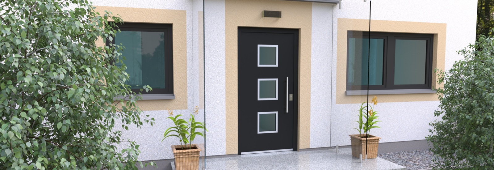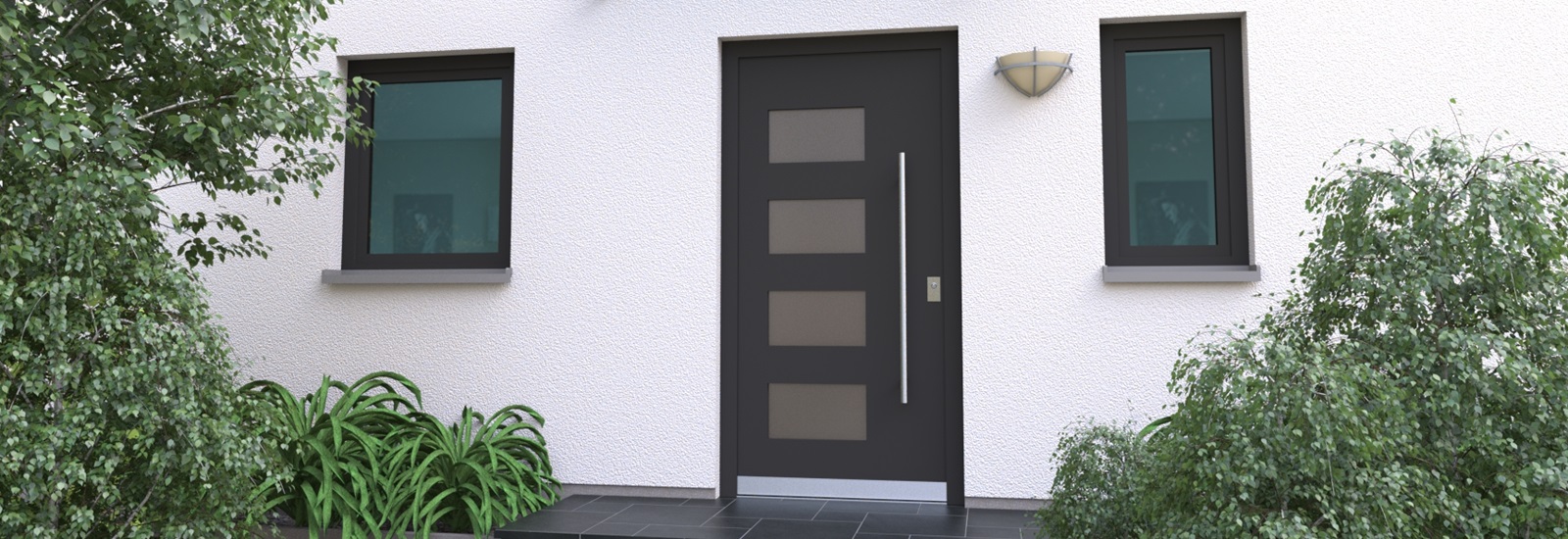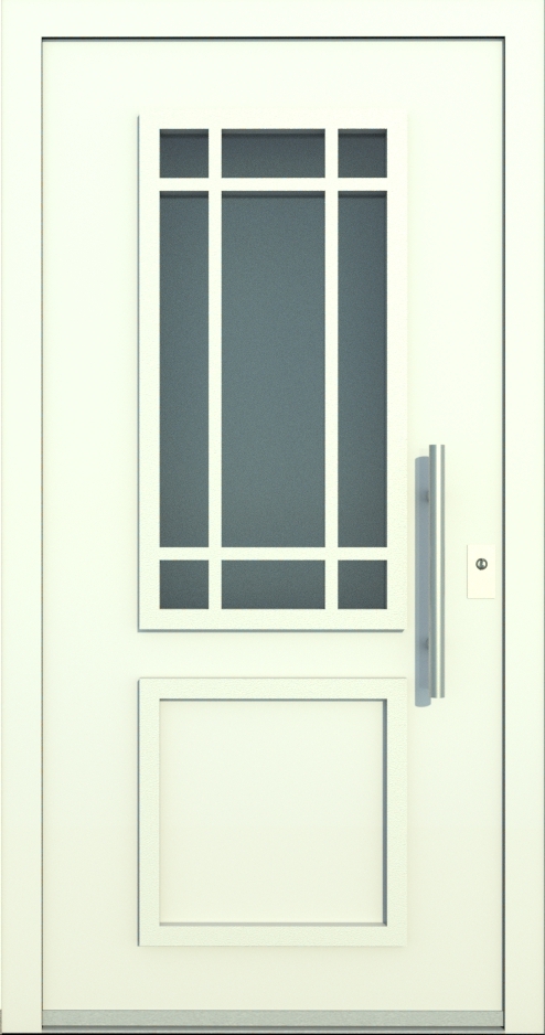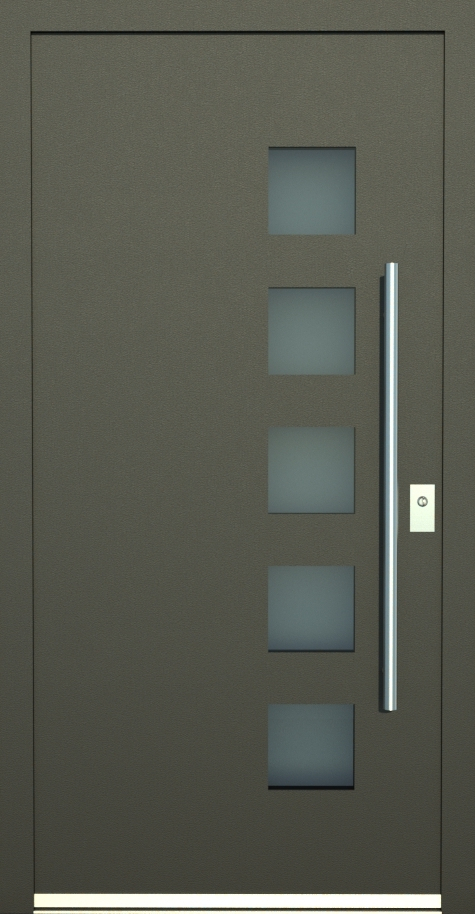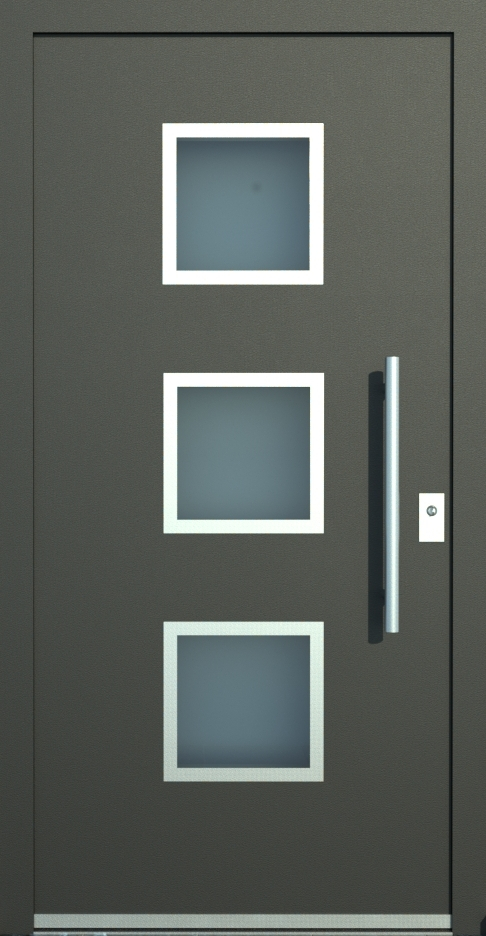 Aluminiumhaustüren mit klassischen Lichtausschnitt ohne Applikationen bzw. ohne Schmuckrahmen. Mehre Lichtauschnitte oder nur ein Lichtauschnitt lassen Ihre Aluminiumhaustüre klassisch und dezent wirken. Wählen Sie zwischen verschiedenen Farben und Ornamentverglasungen, bzw. Glasdesign (sandgestrahlte klare Muster)