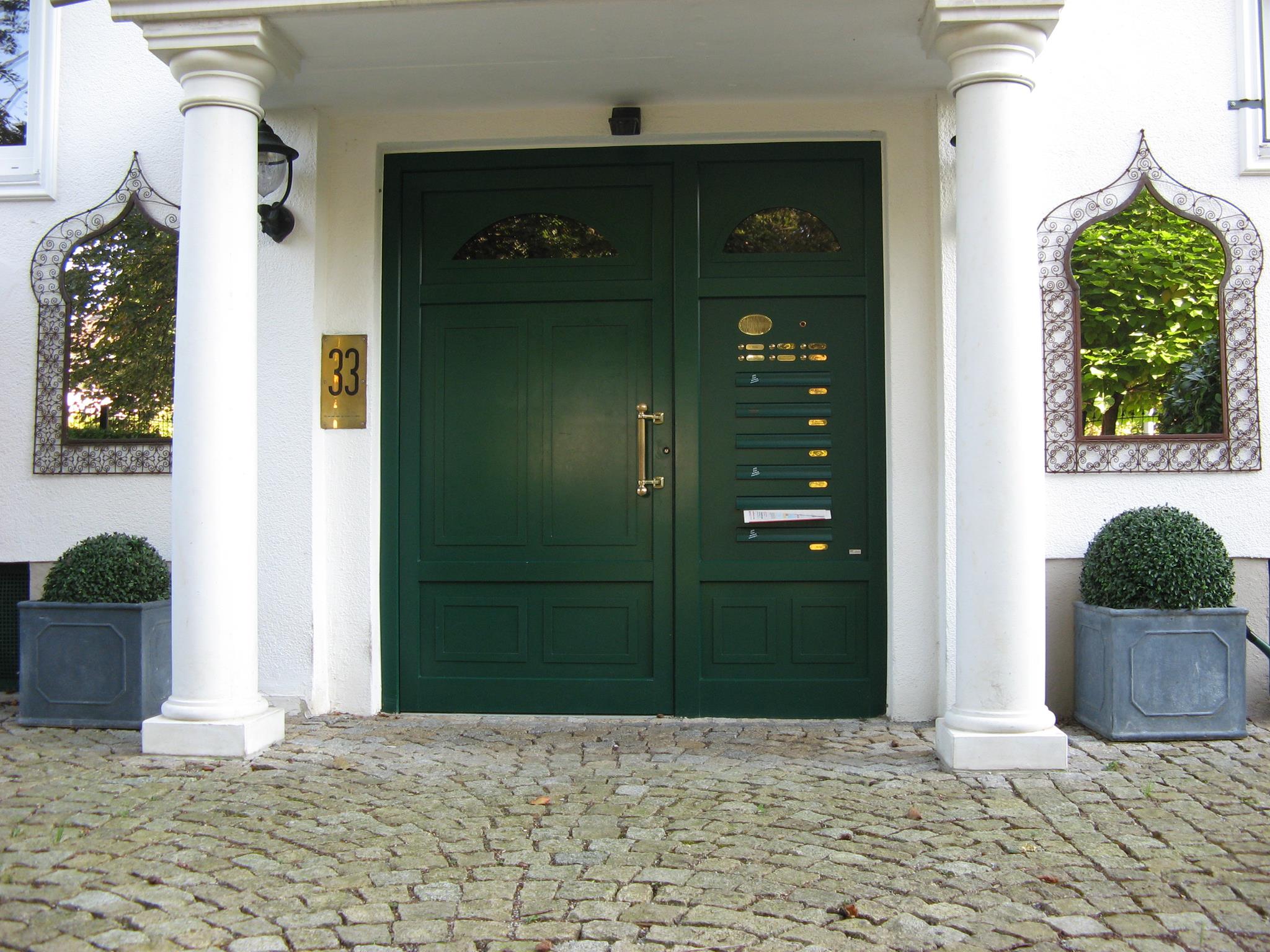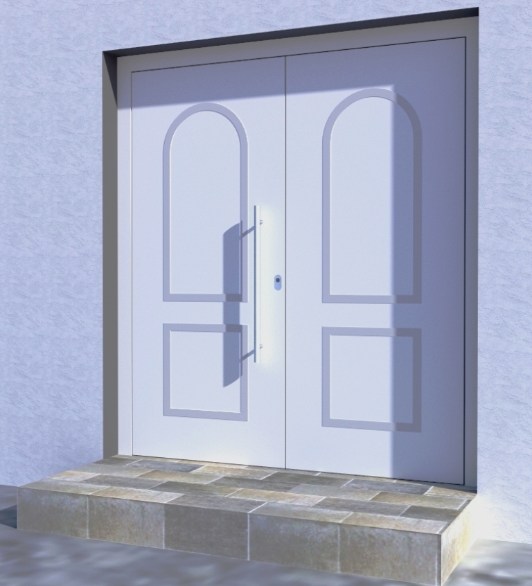 Aluminiumhaustüren mit klassischen Design für den Landhausstil. Alle Schmuckrahmen können sowohl in Edelstahl als auch in RAL pulverbeschichtet ausgeführt werden. Seitenteilfüllungen werden individuell entworfen. Wählen Sie zwischen verschiedenen Farben und Ornamentverglasungen, bzw. Glasdesign (sandgestrahlte klare Muster)