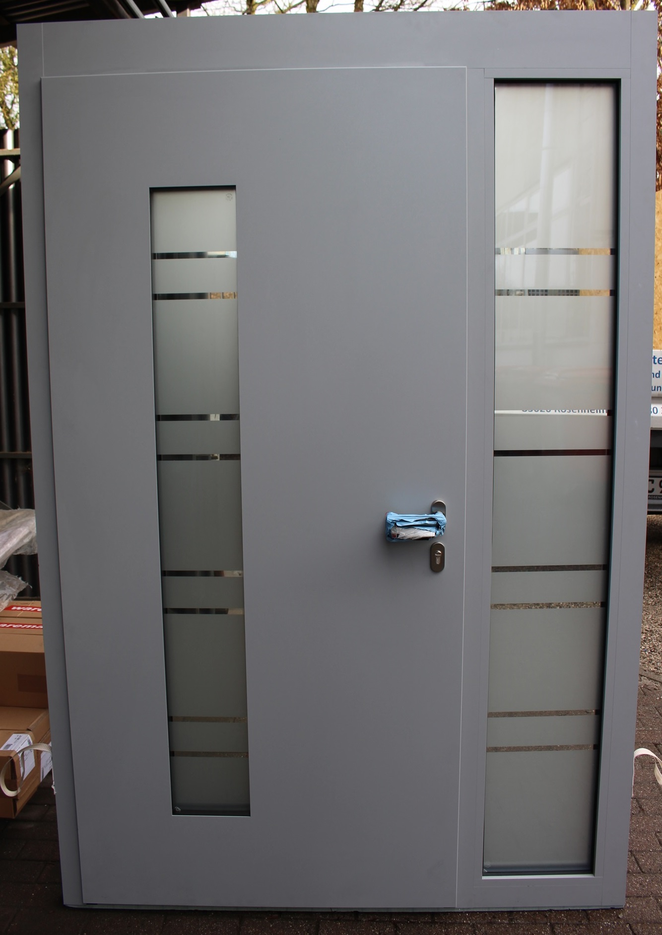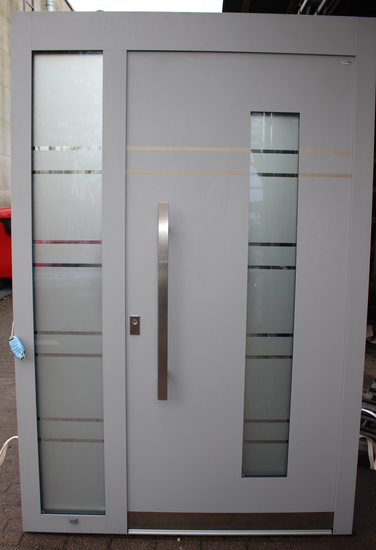 Aluminium-Haustüre mit Aluminium/Edelstahl-Füllung (innen/außen) System Objekt Plus 2F Alusicher RC2 Ausführung mit Prüfzeugnis