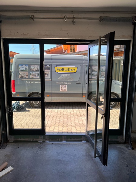 Türelement Maß: 2940 x 2495 mm, bestehend aus vier Festfeldern und einer einflg. Tür.