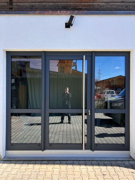 Aluminium-Haustüre mit Aluminium/Edelstahl-Füllung (innen/außen) System Thermo Plus 2F Alusicher RC2 Ausführung mit Prüfzeugnis